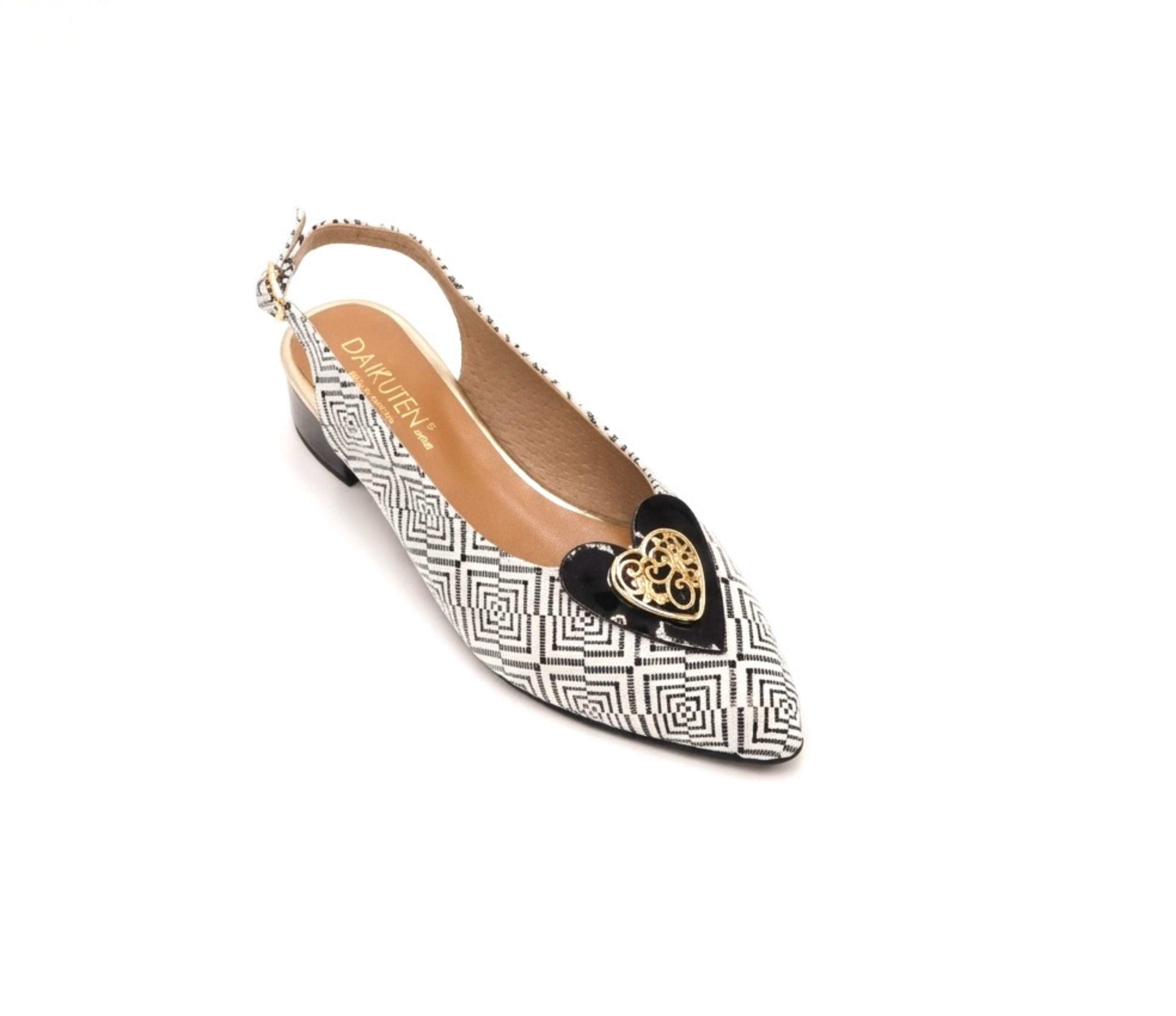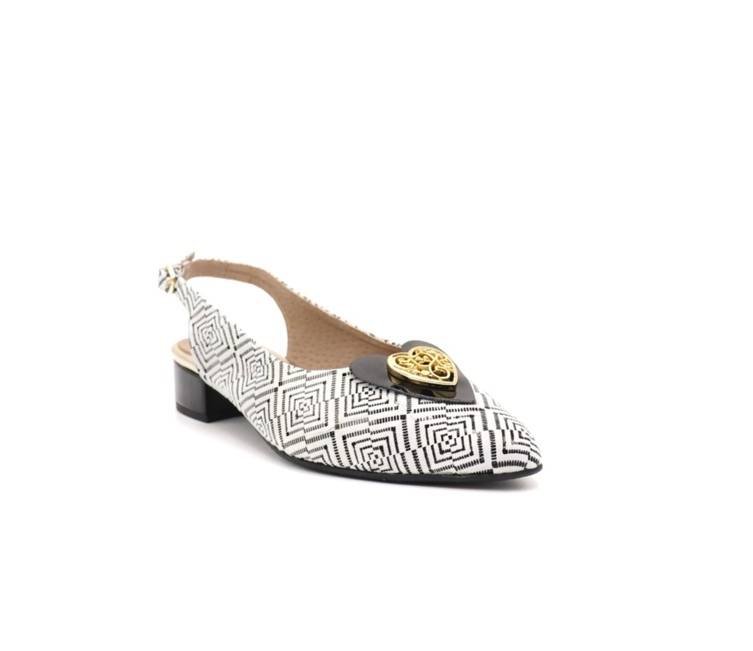 Sapato Raso Preto e Branco com aplicação em dourado